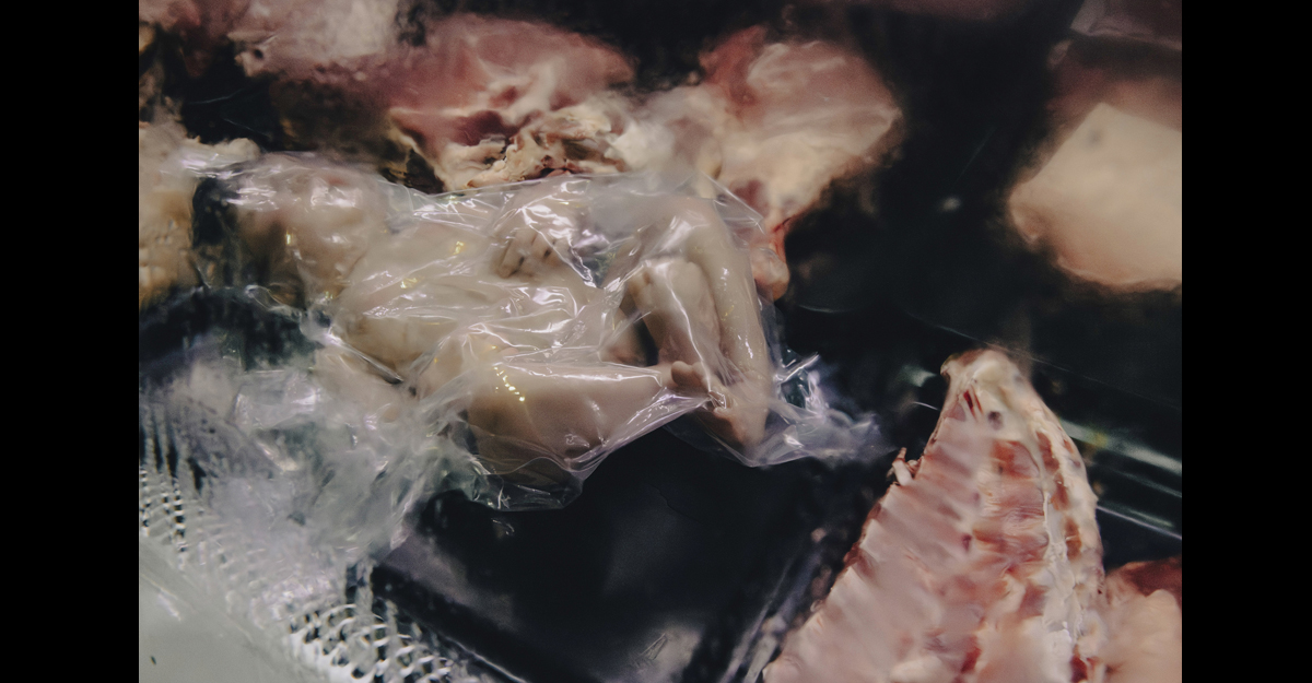 En carn pròpia es una fábula inversa sobre el maltrato y la crueldad que sufren los animales destinados a consumo, unas prácticas inherentes a la ganadería y pesca industriales.