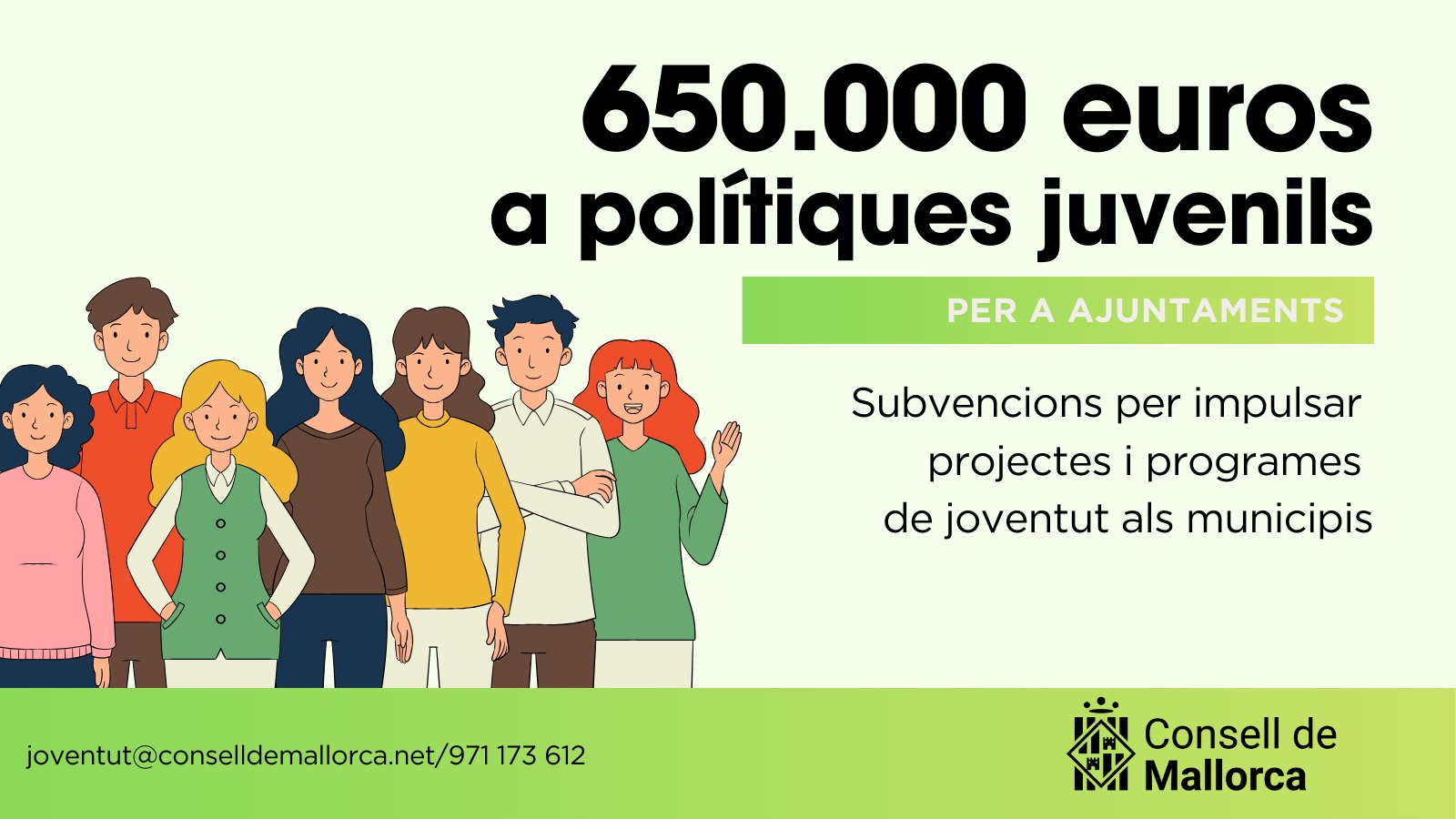 El Consell de Mallorca ha aprobado una nueva convocatoria de subvenciones dotada con 650.000 euros para impulsar las políticas locales de juventud en los municipios de la isla, 50.000 euros más que en la convocatoria anterior. La iniciativa tiene como objetivo reforzar los servicios municipales de juventud y apoyar proyectos dirigidos a la población joven.