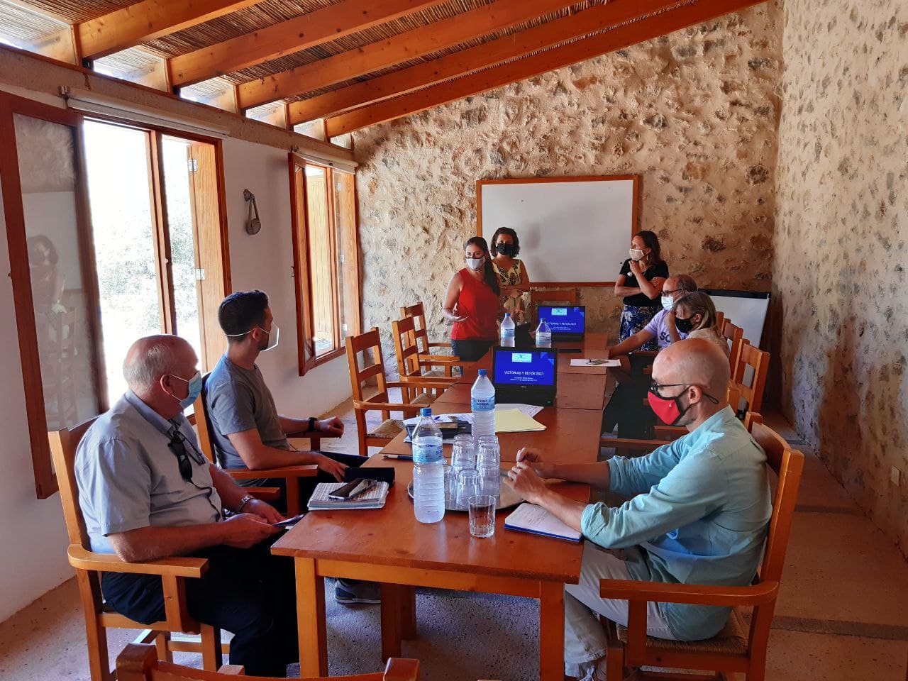 La vicepresidenta y consellera de Sostenibilitat i Medi Ambient, Aurora Ribot, se ha reunido hoy con representantes de Aliança Mar Blava (AMB), ayuntamientos y agentes sociales en el refugio de Muleta, en el Puerto de Sóller. El encuentro ha servido para conocer el plan de trabajo del 2021 y debatir los objetivos del 2022.