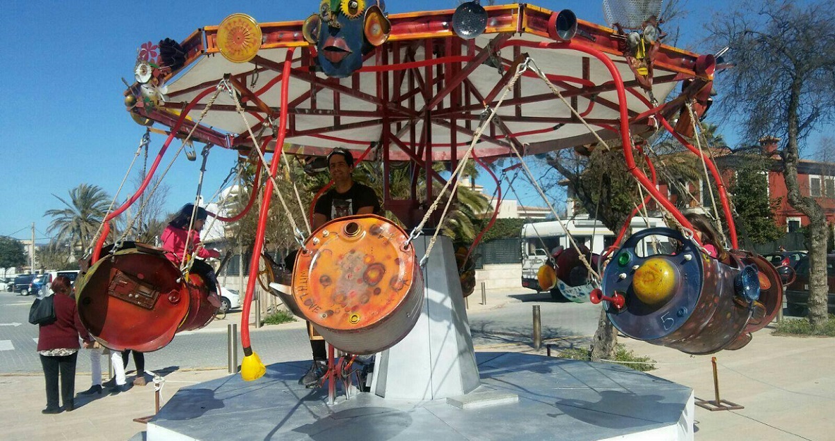 Col·locació a l’espai de 12 jocs grans fets amb materials reciclats i un carrusel també fet a partir de materials reciclats, impulsat a pedals, on poden pujar 8 nins i nines cada vegada. Els nostres jocs i el carrusel poden ser tant a l’exterior com a l’interior: parcs, passejos, recintes firals, places públiques, patis de col·legis…