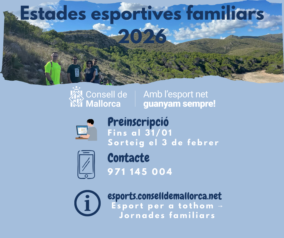 El Consell de Mallorca reactiva la programació adreçada a famílies amb l’obertura de les preinscripcions als sis primers torns de les «Estades esportives», que arribaran a 1.550 participants fins l’abril. És una primera part inclosa en les 36 estades que hi haurà el 2026, amb un total de 6.900 places, que el Consell oferirà entre caps de setmana familiars o per a la gent gran, i campus infantils i juvenils.