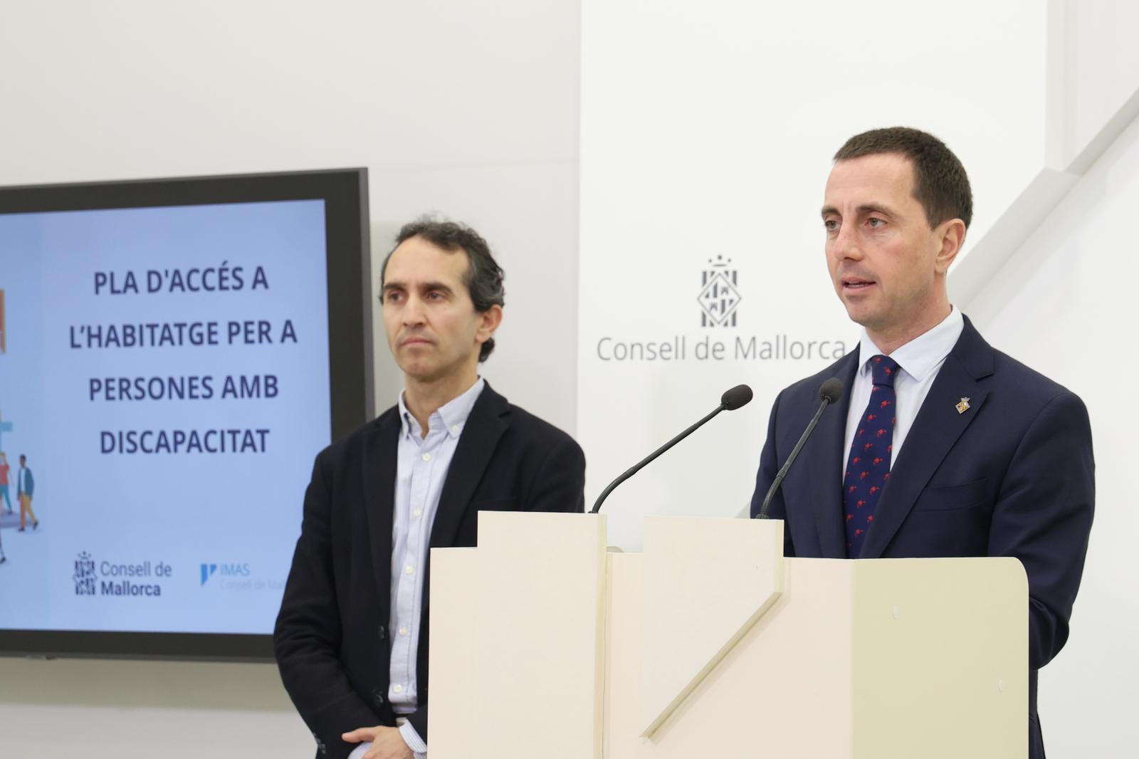 El president del Consell de Mallorca, Llorenç Galmés, i el president de l’Institut Mallorquí d’Afers Socials (IMAS), Guillermo Sánchez, han presentat avui a Palma, en una roda de premsa, el Pla d’Accés a l’Habitatge per a Persones amb Discapacitat, una iniciativa que reforça la vida independent i l’autonomia personal, amb la creació de 137 places durant el 2026.