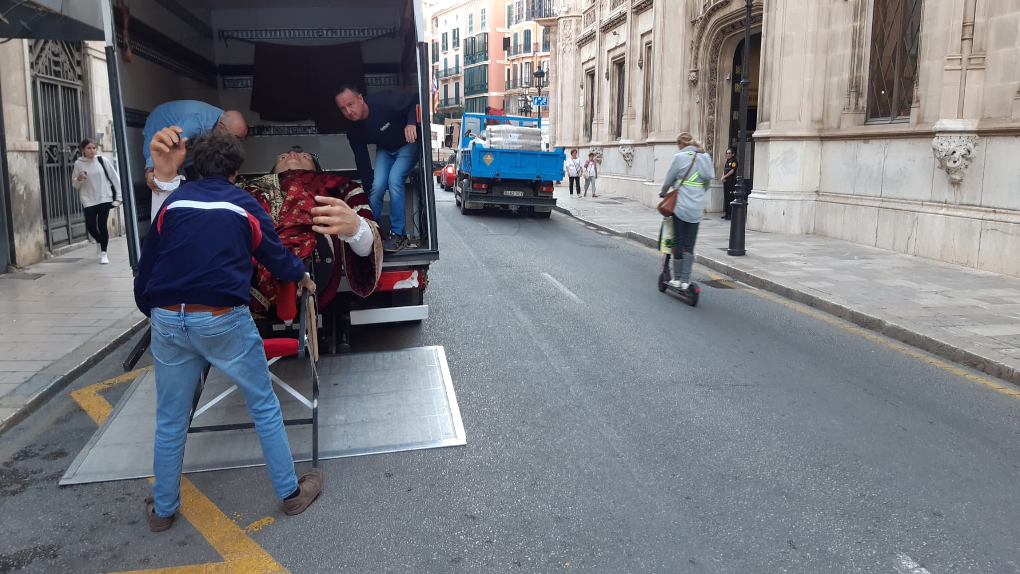 Aquest dijous s'ha tancat el procés de restauració de la colla de gegants del Consell de Mallorca. El mestre artesà, Kake Portas i el seu equip han traslladat des del taller d'Esporles a l'edifici del Palau del Consell la figura del rei Jaume II. Es tracta del darrer gegant que quedava per restaurar, com les altres figures s'ha sotmès a una intervenció que té com objecte garantir l'essència, l'estabilitat del conjunt de figures i també la seguretat pels qui els porten o els fan ballar.